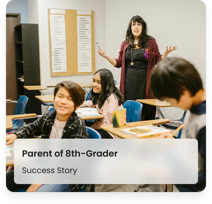 When we started with our Thrive tutor lastAugust, our son was earning Cs or less across the board. He ended this past school year with almost all As and one B. The best part though is his newly found confidence and desire to do well in school.